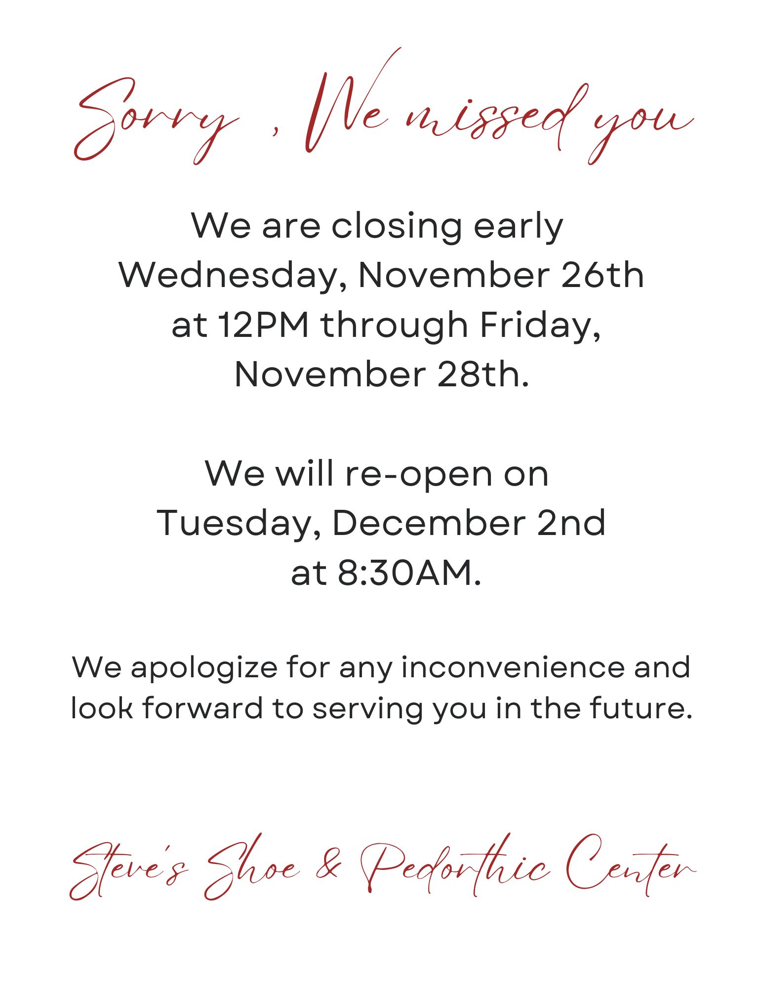 Steve’s Shoe and Pedorthic Center is by appointment only to make sure we meet your needs without interruptions. It allows us to create a safe shopping environment and give one-on-one attention to our clients. If you do decide to stop in without an appointment, we ask that you wait patiently until we have finished with our scheduled patient and cannot guarantee service.
